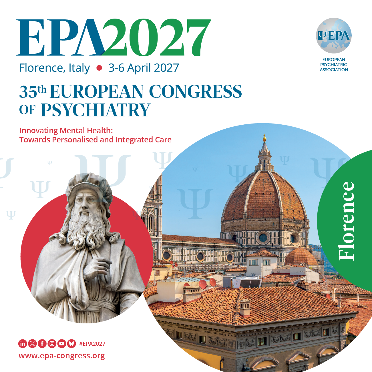 The official hashtag for EPA 2027 is #EPA2027 on all social media channels. Make sure to use the hashtag when posting about the Congress to be part of the discussion. Clicking on the hashtag from one of the tweets, posts or pictures will bring you to all the posts using #EPA2027 on the specific social media network you are using. Feel free to follow this hashtag, share posts that carry it and invite your colleagues to join you at the 35th European Congress of Psychiatry!